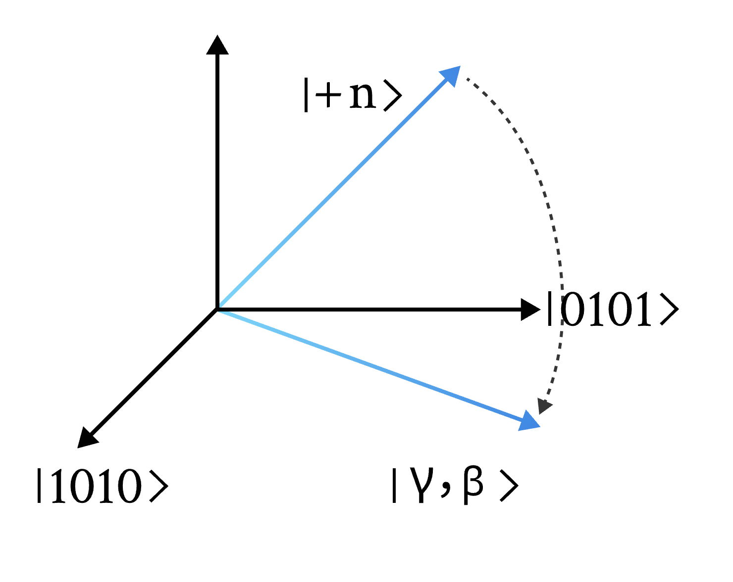 从直观上讲,QAOA 试图将初态演化到 \(|0101\rangle\), \(|1010\rangle\) 构成的平面内(如上图所示)。