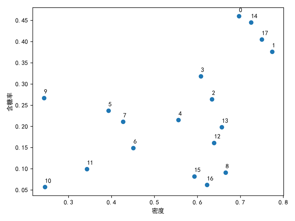 data_ws = np.array([[0.697,0.774,0.634,0.608,0.556,0.393,0.451,0.427,0.666,0.243,0.245,0.343,0.639,0.657,0.725,0.593, 0.6223, 0.75 ],