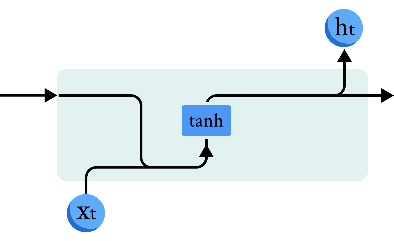 其中输入 \( v_t \) 是前一个时间步长的隐藏状态 \( h_{t−1} \) 与当前输入向量 \( x_t \) 的级联, \( NN \) 是经典神经网络层。