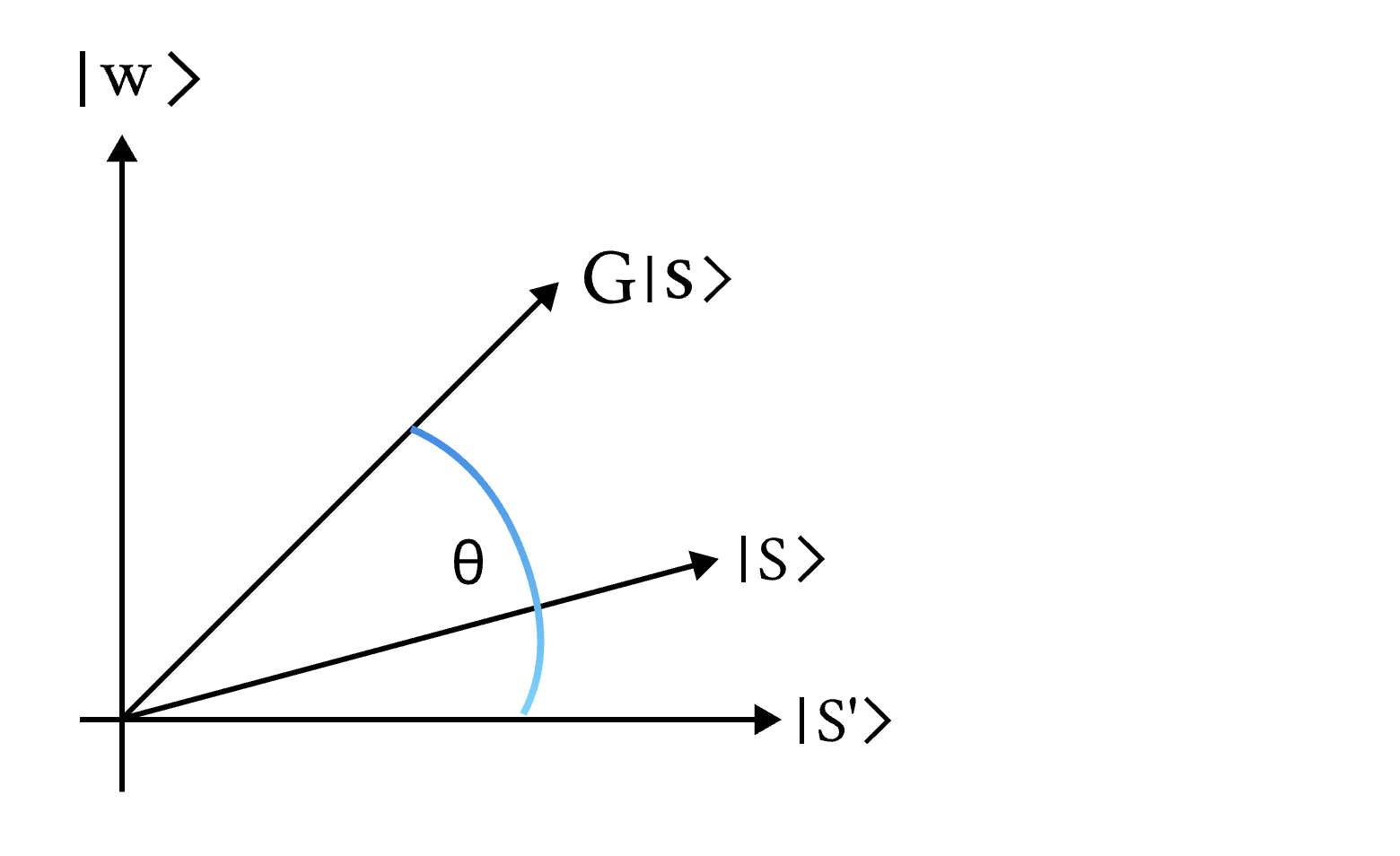 并且 \(|s\rangle\) (计算基态的均匀叠加) 可以用 \(|\omega\rangle\) 和 \(|s'\rangle\) 来表示: