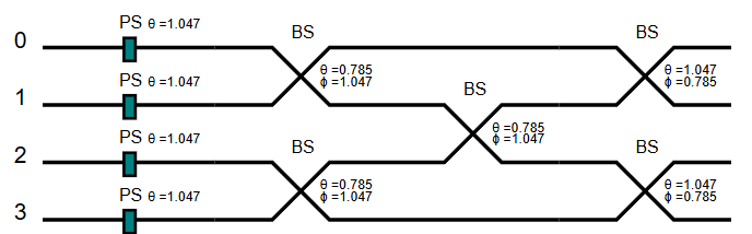 我们以下面的4模线路为例来演示玻色采样